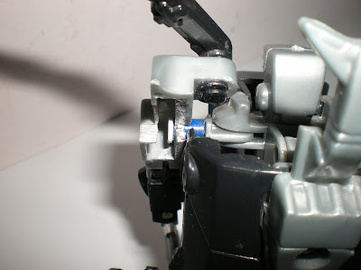 There are actually 3 parts missing, all 3 are for fixing part in position. 2 are the small pins to lock the 2 whole arm-body-connector pieces in either top or bottom positions in various modes, the other was a male-clip on the canopy tip of jet mode. Also have to tighten loosen joints, remove stickers, re-makeup the face and some paint (remove/repaint)... * Below picture was taken before I painted the knees to have a silverish "windscreen" for car mode... *