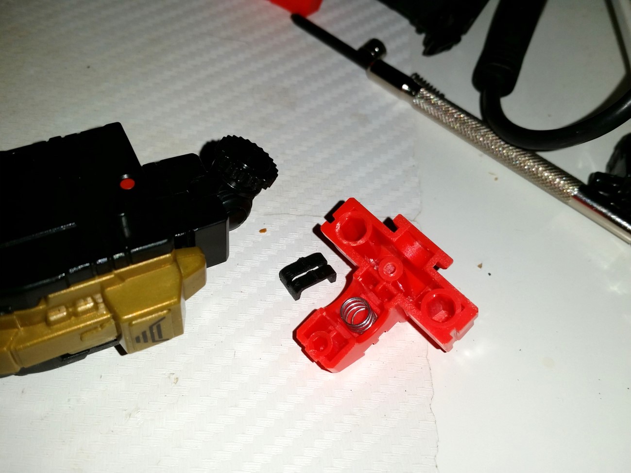 I also added springs back to the robot's thigh joints just to make them slightly better. Decepticon symbol sticker is added myself. Looking forward to all 5 Predacons completely release to form... Predaking!